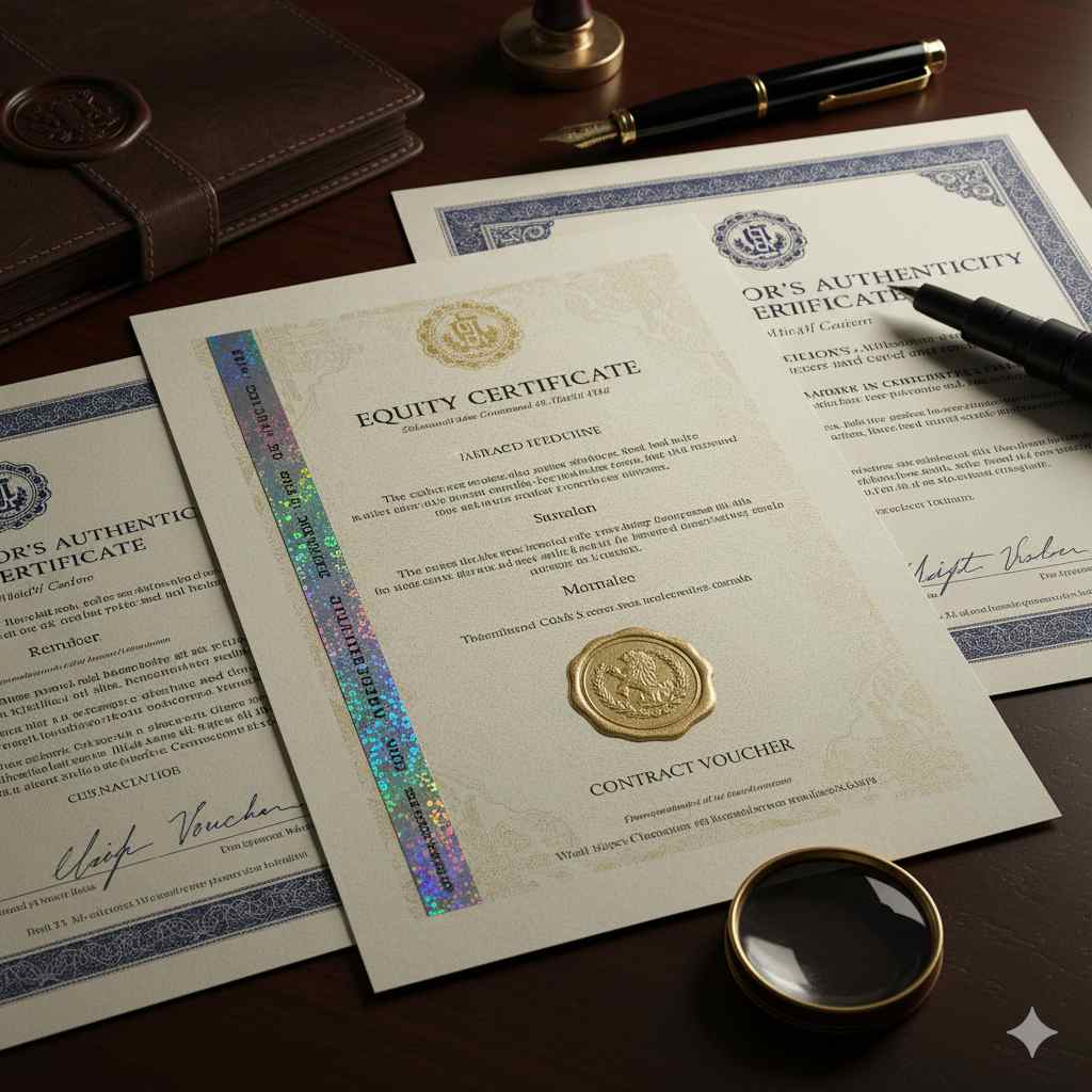 Certificates and Securities:Collector's certificates, equity certificates, contract vouchers